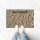 Ce tapis de porte vous fera penser que vous êtes en bord de mer. Il présente une photo que j'ai prise près du sable à Armacao de Pera. J'ai été intrigué par les motifs des empreintes laissées par les passants et j'ai ajouté la mienne pour la postérité. Il est accompagné de la légende modifiable "La vie est une plage"