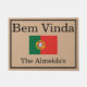 Ce tapis de portes ou de tapis en plein air sur mesure présente une image du drapeau du Portugal au centre sur un arrière - plan de couleur beige. La phrase en haut du tapis dit, "Bem Vinda" qui est portugais pour "bienvenue" et est imprimé juste au-dessus du drapeau portugais. Le drapeau est un vert et rouge gras et beau. Un exemple de nom de famille est imprimé près du bas. Vous pouvez personnaliser ce format et ajouter votre propre nom de famille, nom d'entreprise, message personnalisé ou devis. Le tapis est encadré d'une bordure noire imprimée.
