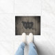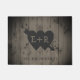 Le pays mignon rustique, natte bienvenue personnalisée parfaite pour un ménage marié juste des nouveaux mariés vieux, arrière - plan en bois de grange grayed et rustique avec la vignette obscurcie affile. Nom de famille personnalisé au fond dans les lettres simples et lunatiques. Est centré les coeurs liés rustiques avec la flèche qui contient des initiales décorées d'un monogramme comme un découpage démodé d'arbre. Tapis de porte bienvenu rustique et romantique pour des couples. Style rustique de pays, cadeau décoré d'un monogramme de pendaison de crémaillère pour les ménages mariés ou décor de mariage ou cadeau unique de wedding shower pour les nouveaux mariés. Note : Toutes les images sont imprimées. Bois non réel. Nous avons des nattes bienvenues plus rustiques de sorts dans notre magasin en ligne de Zazzle.com/angela65.