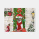 Jack Russell Dog Noël assis à l'extérieur de la maison décorée avec la couronne de Noël, le sapin de Noël est une idée cadeau de Noël parfait pour les amoureux de les chiens.