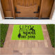 Ce design classique d'Halloween comporte l'expression éffrayante "Je mets un sort sur vous" dans une police audacieuse d'inspiration gothique. Les couleurs noir et blanc rehaussent l'atmosphère étrange, rendant le design parfait pour la saison d'Halloween. Le texte est accompagné d'éléments de sorcellerie iconiques, dont un casquette de sorcière pointu, un bâton de brosse, une toile d'araignée et une minuscule araignée, tous arrangés pour créer une composition de sorcière. Le détail subtil des points autour du texte ajoute une touche de charme magique.