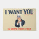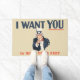 Mettez la peur de l'oncle Sam dans vos invités avec ce drôle de tapis de porte. Il ressemble à l'affiche classique de recrutement de l'Oncle Sam avec une vieille illustration de l'Oncle Same et le message Je VOUS VEUX en haut. Le message sous le graphique dit "à WIPE YOUR FEET" mais ce texte peut être customisé avec votre propre message si vous le souhaitez.