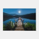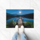 Un tapis de bienvenue avec une belle photo d'une jetée en bois qui s'étend sur un lac calme. Ciel nocturne couvert d'étoiles et belle pleine lune.
