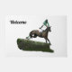 Cheval De Saut & Jockey En Vert, Mat De Porte D'Accueil. Art numérique. "Si vous montez dans la selle, soyez prêt pour la course." Voici les balades pas si faciles. Cheval de course Steeplechase & jockey en vert. Modifiez le libellé, la police ou supprimez-le complètement.