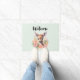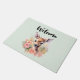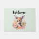Un tapis de bienvenue avec une belle illustration représentant un cerf mignon. Entouré de roses roses et de fleurs roses.