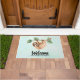 Tapis de porte d'accueil avec un adorable paresseux accroché à l'envers d'une branche d'arbre. La branche d'arbre est décorée de feuilles tropicaux et de baies. Placez-vous sur un arrière - plan vert clair.