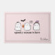 Élevez votre décor de maison d'Halloween avec ce mignon matelas rose avec un trio fantôme amical, chauve-souris et araignée. Le texte est modifiable.