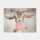 Sur un arrière - plan d'aquarelle, cette fresque peinte d'une adorable petite chèvre portant des oreilles d'avion et soufflant une bulle de bubblegum dit Welcome (Vous pouvez changer ce texte) Chèvre Amateurs Bienvenue Mat -