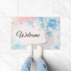 Paillasson Jolies fleurs bleues sur rose Arrière - plan Bienv