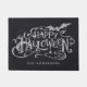 Souhaitez à vos invités un "Happy Halloween" avec notre tapis de porte Halloween personnalisé! Le tapis de porte Halloween personnalisé présente "Happy Halloween" en lettres de craie ornées de chauves-souris et d'araignées avec un arrière - plan en damier. Personnalisez le tapis éffrayant en ajoutant votre nom de famille ou votre texte personnalisé.