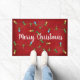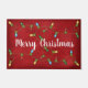 Une chaîne colorée de lumières de Noël sur le rouge avec le texte Joyeux Noël.