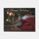 Cet adorable chat gris est prêt à ouvrir dans votre famille pour Noël. Doté de "Joyeuses Fêtes", ce tapis porte est muni d'un chaton adorable sous un sapin de Noël. Appréciez ce tapis de porte aujourd'hui. Art de : Myshun