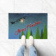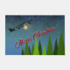 Le Père Noël et ses rennes volent au-dessus des arbres pendant une nuit au clair de lune.