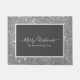 Élégant Matelas de Noël Joyeux avec un script blanc sur un arrière - plan parties scintillant argent. Personnalisez avec votre nom de famille ou votre texte.