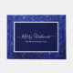 Élégant Matelas de Noël Joyeux avec un script blanc sur un arrière - plan bleu entouré d'un cadre de parties scintillant bleu. Personnalisez avec votre nom de famille ou votre texte.