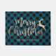 Le design moderne des nattes de Noël, qui comprend des lettres manuscrites en faux or, de beaux rennes, des arrière - plans en plaid de buffles noirs et bleus en motif. Un cadeau de Noël parfait pour les nouveaux propriétaires ou les jeunes mariés.