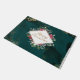 Le magnifique tapis de Noël représente un élégant arrière - plan vert abstrait avec des éclaboussures d'or. Il présente une fleur rouge et un design verdoyant autour d'un cadre en diamant avec l'accueil "Joyeux Noël" en écriture or.