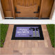 Belle illustration de jambes de sorcières et de pieds amusants avec Happy Halloween et espace ci-dessous pour un texte personnalisable. Le tapis de porte familial parfait pour Halloween!