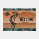 Personnalisez ce tapis de portes sud-ouest unique "One of a Kind" !  Il présente un Kokopelli jouant la Flûte et dansant sous le soleil dans le désert....sur un Arrière - plan du sud-ouest en Turquoise, Orange & Black!