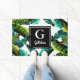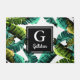 Obtenez un regard de pavillon d'île d'amusement à votre entrée ! Cette conception moderne tropicale de feuille de banane a votre lettre initiale et nom de famille en manuscrit. L'île chic est facile avec cette grande natte tropicale.