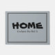 Conception simple avec texte HOME en très gros caractères, alors que "est là où le panier est" en petits caractères. Les gens au hasard qui passent votre porte ne remarqueront probablement que le mot HOME.