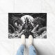 Un guerrier samouraï devant devant dragons japonais en face à face dans un style en noir et blanc pour accentué cet effet de tension.