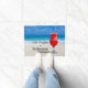 La vie commence à la retraite, boisson gelée sur la plage, design coloré populaire.