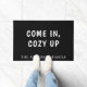 Un arrière - plan noir, un texte blanc. Personnalisez et ajoutez votre nom de famille. Texte : Entrez, confortez-vous