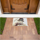 Photo d'un bonhomme de neige amical sur un paillasson.