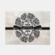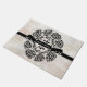 Voici un joli tapis de porte de vacances d'hiver que vous pouvez personnaliser avec votre nom de famille. Une illustration des cônes de pin et des branches de houx entoure un ruban noir qui comporte un nom ou un monogramme de votre choix au centre. Cette conception de fête apparaît sur un fond peint par aquarelle neutre. Elle fait une première impression artistique pour n'importe quelle entrée.