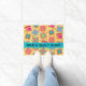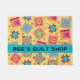 Clients bienvenus à votre magasin d'édredon ou affaires avec ce tapis de porte coloré personnalisé avec votre raison sociale. Vous pouvez facilement customiser le nom ou d'autres mots pour votre entrée de porte. Ce tapis de porte est grand pour favoriser votre amour piquant d'affaires et d'exposition de patchwork d'édredon et est également grand pour une classe de quild ou d'édredon. La raison sociale personnalisable est sur une bande bleue d'aqua de turquoise et peut facilement être customisée à un autre mot tel qu'un nom de guilde. Cet art original d'édredon combine les blocs préférés d'édredon tels que le cabine, les étoiles et les soleils de rondin plus les blocs uniques pour former une conception d'édredon avec les couleurs vibrantes et dynamiques qui sautent sur un arrière - plan noir. Les couleurs de bloc sont bleu vert, jaune, rose, orange, rouge, et de turquoise. Les petites fleurs jaunes sont à l'arrière-plan entre les blocs. L'art entièrement personnalisable d'édredon est de concepteur Phyllis Dobbs de tissu et d'édredon et est facile de lui faire vos propres.