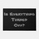 Cette natte d'amusement a une question imprimée dans de grandes lettres pour vous rappeler de tourner des choses outre par exemple des commutateurs électriques, l'électronique, ect de gaz. car vous partez la maison "est tout arrêtée ?" est la question que vous verrez comme vous allez ouvrir votre porte sur cette natte noire et grise. La définition gris-clair des textes un rappel doux pour pulser votre mémoire et pour vous rappeler de vérifier une deuxième fois vos commutateurs électriques et d'autres appareils avant que vous quittiez la maison, il est également une natte originale et d'amusement pour avoir dans votre maison. C'est une natte personnalisable, vous pouvez choisir la couleur et la personnaliser avec votre propre texte si vous souhaitez à.