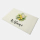 A welcome doormat with a lovely illustration of a bouquet of lemons surrounded by white blossoms leaves and sprigs.