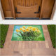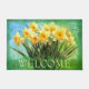 Ce tapis de bienvenue lumineux et gai présente un bouquet de jonquilles jaunes de printemps sur un arrière - plan vert aquarelle avec le mot "Bienvenue" ci-dessous pour partir tel quel ou personnaliser. Conçu par un artiste mondialement connu ©Tim Coffey.