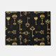 Seamless pattern of antique, gold and silhouette keys on black background.