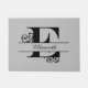 Sur ce tapis de porte distinctif, votre nom est en écriture au centre d'une lettre florissante divisée E. Le nom et la lettre sont en noir, et affichés sur un arrière - plan gris moyen à clair. Vous pouvez modifier la couleur de l'arrière - plan, si vous le souhaitez, en choisissant Modifier la conception. Elégance pour votre entrée !