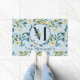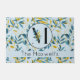 Beau design arrière - plan de feuilles bleu et or sur arrière - plan bleu clair avec monogramme/ M initial avec embellissement feuille en cercle central. Personnaliser avec nom ou autre message spécial