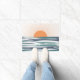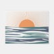 Illustration Abstraite du lever du soleil avec soleil orange et décoration des vagues bleues, blanches et turquoise