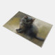 Votre accueil s'est amélioré quand vous utilisez cet adorable tapis de porte en chaton ! Ce tableau présente un adorable chaton noir à la fourrure molle et moelleuse. Elle est assise dans une pose sereine, comme pour calculer son prochain déplacement. Ses yeux verts brillent de curiosité alors qu'elle étudie son environnement. L'arrière - plan de la peinture est un gris doux et muet mélangé au jaune/vert, ce qui aide à mettre en valeur son manteau foncé. L'ensemble est un effet d'innocence, de jeu et de charme, ce qui en fait un doux ajout à n'importe quelle pièce.