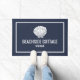 Bienvenue aux visiteurs avec ce modèle moderne de coquillages location de vacances Tapis de portes avec typographie moderne en blanc sur un arrière - plan bleu marine. Ajoutez votre nom personnalisé de location de vacances à cet élégant matelas, parfait pour une location de maison de plage, location de lac ou airbnb.