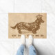 Paillasson Long Haired Daschund Chien W/ Couronne Vintage