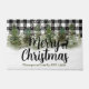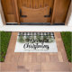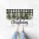 Magnifique neige saison hivernale tapis de sol mignon. Ce tapis de sol de noël est à motif plaid buffalo noir et blanc en arrière-plan. Il a l'air si cosy avec la neige et les bois de pins aquarelles. Le texte Joyeux Noël est personnalisable ainsi que le nom de la Famille.