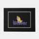 Le tapis de porte est montré en noir et a les mains de prière et le texte de bienvenue. Customisez ce tapis ou achetez tel quel.