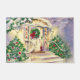 Une belle maison de campagne décorée de Noël vintage dans un paysage hivernal. Deux arbres de Noël se tiennent à côté de l'entrée de la maison, dans chaque fenêtre éclairée une bougie et sur la porte accroche une couronne de Noël. Customisez de personnaliser le produit cadeau!