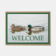 Deux canards colverts, un drake et une femelle, nagent ensemble dans un étang de l'Alaska. Le texte "BIENVENUE" apparaît également. Le Mallard, Anas platyrhynchos, se reproduit dans les Amériques tempérées et subtropicales, en Europe, en Asie et en Afrique du Nord, et a été introduit en Nouvelle-Zélande et en Australie. Les mâles ont une tête verte ou bleue vive, tandis que la femelle est brune pâle. Le colvert grégaire vit dans les zones humides et mange des plantes d'eau. Le Mallard est l'ancêtre de la plupart des canards domestiques. Le Mallard était l'une des nombreuses espèces d'oiseaux décrites à l'origine par Linnaeus dans son oeuvre du 18ème siècle, Systema Naturae, et porte toujours le premier nom binomial qu'il a été donné. Le nom est dérivé du vieux malart français ou mallart "wild drake", bien que sa dérivation finale n'est pas claire. Il peut être lié à un ancien nom masculin allemand ancien Madelhart, des indices qui se trouvent dans l'anglais alternatif "maudelard" ou "mawdelard". Les colverts se reproduisent fréquemment avec leurs parents les plus proches du genre Anas, comme l'American Black Duck, et aussi avec des espèces plus distantes, comme le Northern Pintail, conduisant à divers hybrides qui peuvent être pleinement fertiles. C'est assez inhabituel et indique que le Mallard a évolué très rapidement pendant le Pléistocène tardif. Les colverts semblent être plus proches de leurs parents indo-pacifiques que de leurs parents américains à en juger par la biogéographie. Compte tenu des données sur la séquence D-loop d'ADNmt, ils ont peut-être évolué plus probablement que pas dans la région générale de Sibérie; les os de colard apparaissent de façon abrupte dans les restes alimentaires d'humains anciens et d'autres dépôts d'os fossiles en Europe, sans qu'il y ait de bon candidat pour une espèce locale antérieure.La grande paléosous-espèce de l'âge de glace qui composait au moins les populations européennes et occidentales asiatiques pendant le Pléistocène a été nommé Anas platyrhynchos paléoboschas. Le Mallard mesure entre 20 et 26 pouces de long (dont le corps représente environ les deux tiers), a une envergure d'aile de 32-39 pouces et pèse 1,6-3,5 livres. La taille du colvert varie cliniquement, et les oiseaux du Groenland, bien que plus grands que les oiseaux plus au sud, ont des bec plus petits et sont plus abondants. Il est parfois séparé comme sous-espèce, le Mallard du Groenland (A. p. conboschas).Le Mallard est un rare exemple de la Règle d'Allen et de la Règle de Bergmann chez les oiseaux. La Règle de Bergmann, qui stipule que les formes polaires ont tendance à être plus grandes que les formes apparentées provenant de climats plus chauds, a de nombreux exemples chez les oiseaux. Allen's Rule dit que les appendices comme les oreilles ont tendance à être plus petits dans les formes polaires pour minimiser la perte de chaleur, et plus grands dans les équivalents tropicaux et désertiques pour faciliter la diffusion de la chaleur, et que les taxons polaires sont globalement plus bas. Des exemples de cette règle chez les oiseaux sont rares, car ils n'ont pas d'oreilles externes. Cependant, la caisse de canards est très bien fournie en vaisseaux sanguins et est vulnérable au froid. Les mâles reproducteurs sont indéniables, avec une tête vert-bouteille brillante, une extrémité arrière noire et un bec orange jaunâtre (peut également contenir un peu de rouge) tipés de noir (par opposition à la facture noire/orange chez les femelles). Ils ont un collier blanc qui délimite la tête de la poitrine marron violet, des ailes brunes grises et un ventre gris pâle. La queue noire a des bordures blanches. La femelle Mallard est un brun clair tacheté, comme la plupart des canards roux femelles, et a des joues bouffantes, sourcils, gorge et cou avec une couronne plus foncée et des rayures oculaires. Lors de l'éclosion, la couleur plumage du canard est jaune sur le dessous et le visage (avec des stries par les yeux) et noir sur le dos (avec quelques taches jaunes) jusqu'au sommet et à l'arrière de la tête. Ses jambes et son bec sont également noirs. Alors qu'il approche d'un mois, le plumage du canard commencera à devenir terne, ressemblant davantage à la femelle (bien que son plumage soit plus strié) et ses jambes perdront leur couleur gris foncé. Deux mois après l'éclosion, la période de reproduction s'est terminée et le canard est maintenant un juvénile. Entre trois et quatre mois, le juvénile peut enfin commencer à voler lorsque ses ailes sont entièrement développées pour le vol (ce qui peut être confirmé par la vue de plumes de spéculum violet). Son projet de loi va bientôt perdre sa couleur gris foncé et qu'il s'agisse d'un homme ou d'une femme peut enfin être distingué par trois facteurs. La coloration de la facture est jaune chez les hommes, noir et orange chez les femmes. Les plumes du sein sont brun rougeâtre pour les hommes, brun pour les femmes. La plume de queue centrale des oiseaux mâles (appelée plume de drake) est courbée; les femelles ont des plumes droites. Au cours de la dernière période de maturité menant à l'âge adulte (6-10 mois), le plumage des jeunes filles reste le même tandis que le plumage des jeunes garçons change lentement de couleur reconnaissable. Ce changement de plumage s'applique également aux mâles adultes de Mallard lorsqu'ils entrent et sortent de leur plumage non reproducteur (éclipse) au début et à la fin de la période de mue estivale. L'âge adulte pour Majards est de 14 mois et l'espérance de vie moyenne est de 20 ans. Espèce bruyante, le mâle a un appel nasal, et un sifflement aigu, tandis que la femelle a un quack plus profond stéréotypiquement associé aux canards. Le Mallard est largement répandu dans l'hémisphère nord, en Amérique du Nord, du sud et du centre de l'Alaska au Mexique, aux îles
