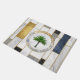 Marble Modern Tropical Palm Nom de famille Doormats dispose d'un motif en marbre de luxe géométrique en blanc, gris, bleu et or avec un palmier au centre et personnalisée avec votre nom de famille. Fabuleux pour les cadeaux et le décor extérieur. Conçu par © Evco Studio www.zazzle.com/store/evcostudio