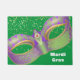Ce tapis de portes est affiché en vert avec une empreinte d'étoiles dorées avec une impression festive Mardi Gras Carnival Mask. Customisez cet objet ou achetez tel quel.