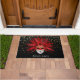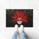 Ce mat de porte est montré avec un arrière - plan de couleur noire avec des étoiles dorées avec une impression de Masque Mardi Gras de carnaval festif. Customisez cet objet ou achetez tel quel. Image stock