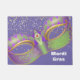 Ce mat de porte est montré en violet avec une empreinte d'étoiles dorées avec une impression festive Mardi Gras Carnival Mask. Customisez cet objet ou achetez tel quel.