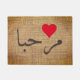 Texte gras " Marhaba" en arabe = Bienvenue, Bonjour - arrière - plan rustique burlap, polices brun foncé, coeur rouge . Grand paillasson pour les familles arabes / les étudiants qui étudient la langue ou pour toute autre personne qui aime le flair du Moyen-Orient.